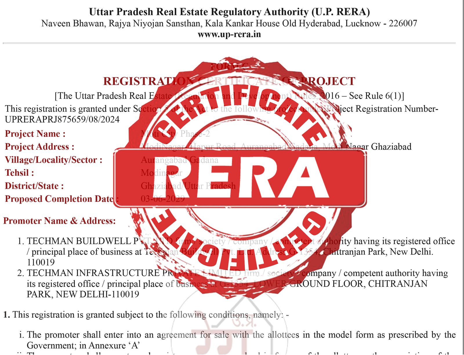 UPRERA Registration No. UPRERAPRJ875659/08/2024
